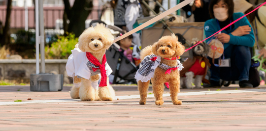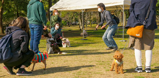マーチングバンドの楽しい演奏を先頭にして、別府公園のまわりを愛犬と一緒にパレードします。