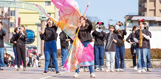 マーチングバンド【アンバー・イン・ブルーバード】の迫力ある演奏パフォーマンスを是非ご覧ください。